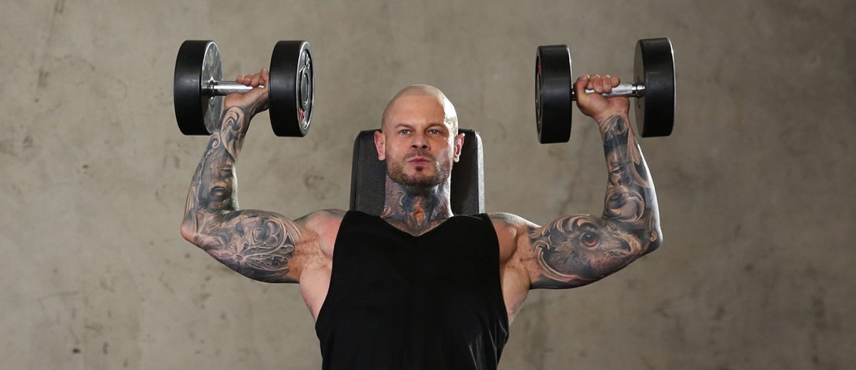 You can do this move sitting down on a bench or you can stand against a wall. All you have to do is pick up a dumbbell, by the side weight rather than in the middle, in each hand. Slowly lift the weights up to your shoulders and let them back down. You can add an isometric pause just after the top of the movement.Â